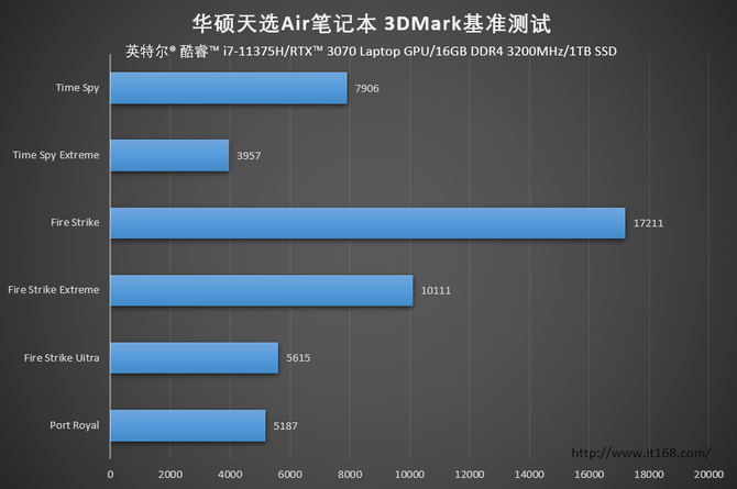 接下来我们使用最新版3DMark进行测试,测试项目包括TimeSpy、Time Spy Extreme、Fire Strike、Fire Strike Extreme、Fire Strike Uitra,以及Port Royal光追测试,结果均统计综合得分。