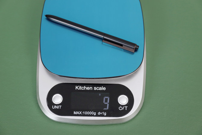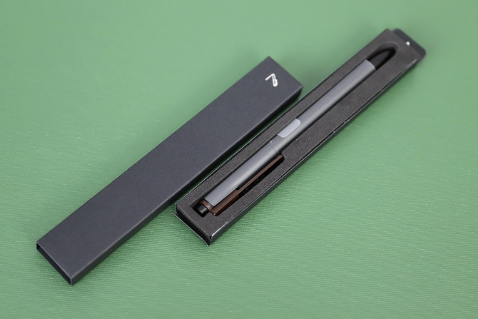 Wacom讯飞定制电磁笔的重量只有9g,跟常用的水性笔差不多,但是机身还略细,手感也相当不错,日常可以挂在主机身右侧的笔套里。
