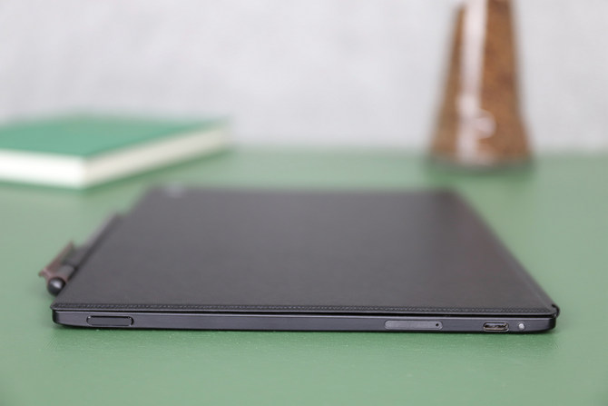 机身的按键和接口都位于顶端,电源按键还带有指纹识别功能,能够确保重要文件和商务会议不被他人窥探。数据和充电采用了Type-C接口,能够与你的笔记本、手机等数据线一致,出差时减少携带数据线的繁琐,充电时,旁边还有一个指示灯。此外,这款办公本还搭载了SIM卡+TF二合一卡托,支持无线WiFi和4G连接,随时都能确保上网收发邮件、分享,或者浏览即时资讯。
