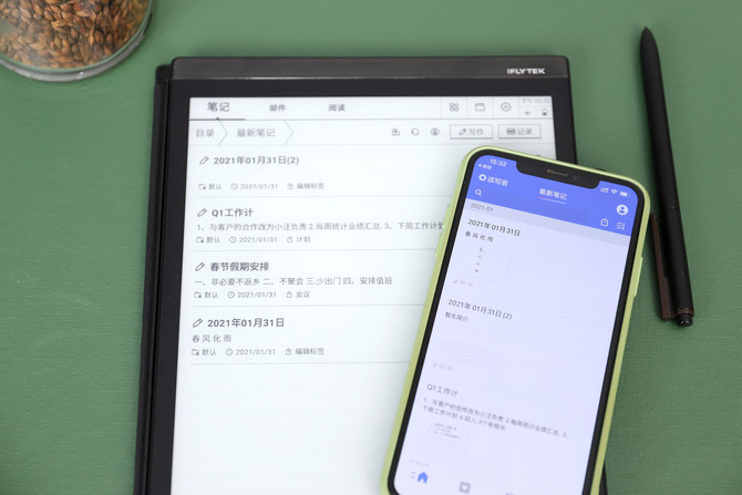 讯飞智能办公本X2还支持云端同步,只需要在手机端安装一个读写客APP,登录账号后,就能与办公本信息进行同步了,更加便于查询,也多了一个备份。