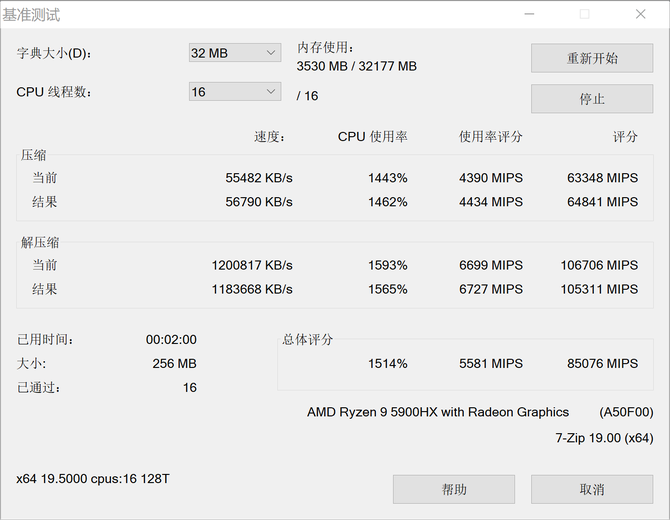 7-ZIP是一款我们日常使用的一款软件,最终处理器得分为85076MIPS,性能表现出色。