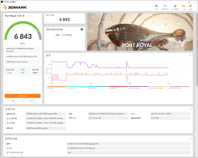 在光追性能方面,GeForce RTX 3080的成绩为6843,性能表现优秀,能够满足大部分的光追游戏需求。