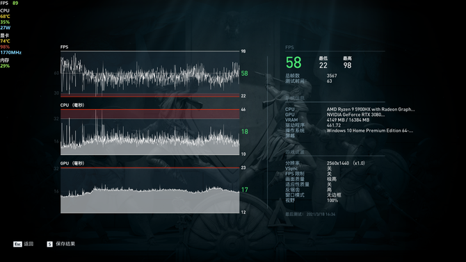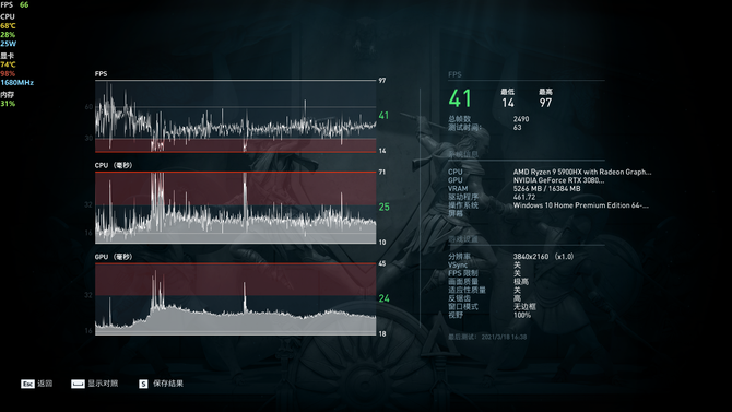 实际游戏测试方面,在2K分辨率下,高特效,打开光线追踪的时候,古墓丽影暗影的2K游戏帧数为57帧,在4K分辨率下,高特效下,游戏帧数为37帧,达到流畅运行游戏的要求。