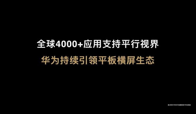 平行视界解决了平板电脑横屏使用的生态痛点,带来了全新的交互体验,解决了安卓平板里面大部分应用不支持横屏使用的问题,提升了平板的工作效率,也丰富了用户在平板电脑的使用场景。目前全球已经有约4000款应用支持平行视界,TOP 300的应用都可以在华为MatePad Pro上使用100%横屏体验,突破平板的使用瓶颈,将平板变成可用、易用、好用的生产力工具。