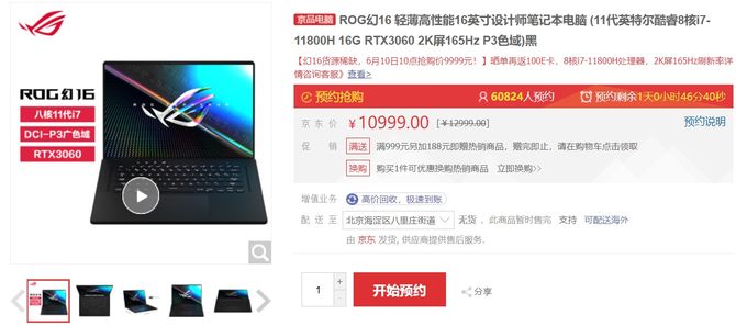 ROG幻16高性能轻薄本主要面向设计师而打造,硬件方面搭载了最新的11代英特尔酷睿 i7-11800H 8 核处理器,英伟达 RTX 3060 显卡,同时还配备2K高清屏以及165Hz高刷新率,并搭载 90Wh 大容量电池。这款产品目前正在京东商城开启预约,并于6月10日10点抢购,售价 9999 元,晒单后咨询客服再送100E卡,货源稀缺,千万不要错过!
