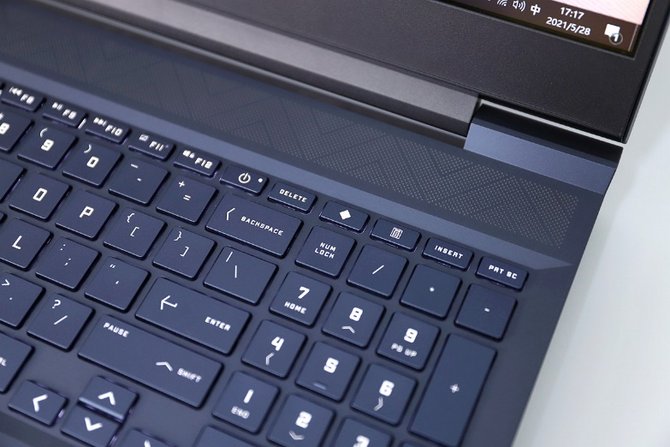 这款笔记本搭载了一个大尺寸的键盘以及附带了数字按键区。键盘按压的手感适中,不硬也不软,打字时几乎听不到声音,按键的反馈干脆利落,打字时能够感觉到段落感。这款键盘提供了LED背光,可以满足在较暗环境下的准确敲击。触控板的面积相比上一代光影精灵6,增加了19%面积,操作空间更加舒适。
