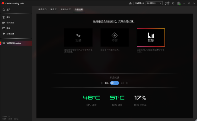 这款光影精灵7还预装了OMEN Gaming Hub应用,也就是惠普游戏控制中心,想要把自己的笔记本变得与众不同、更加个性化,通过OMEN Gaming Hub的设置就能轻松实现,随时都能满足玩家所需。