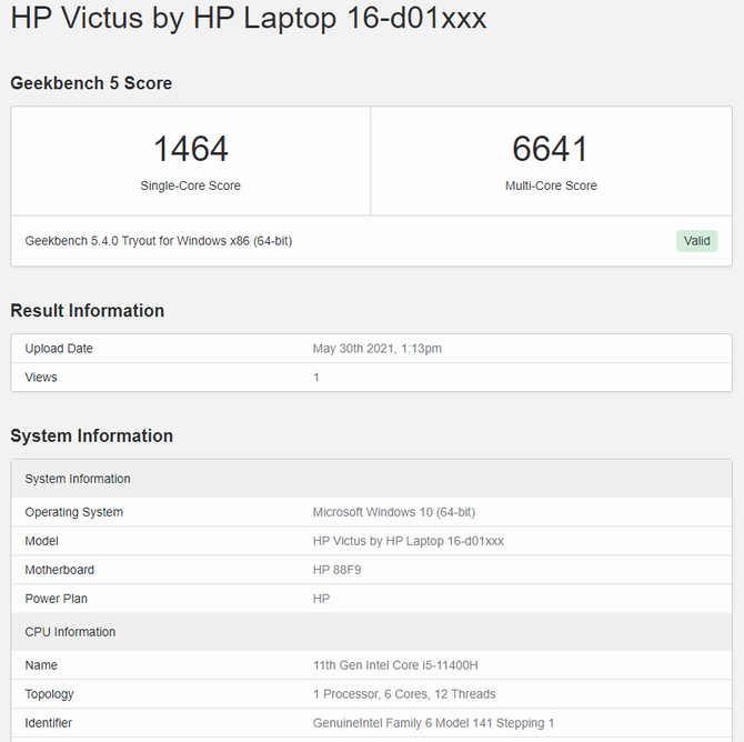GeekBench 5也是最常使用的CPU测试工具,在运行中,可以模拟多种办公场景,并给出最终的量化数据,结果可见,这款i5-11400H处理器在这款光影精灵7笔记本中的单核成绩为1464,多核成绩为6641,表现不错。