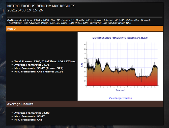 在《地铁离去》的游戏测试中,1080分辨率下的平均帧数也达到了34fps,可以流畅运行。