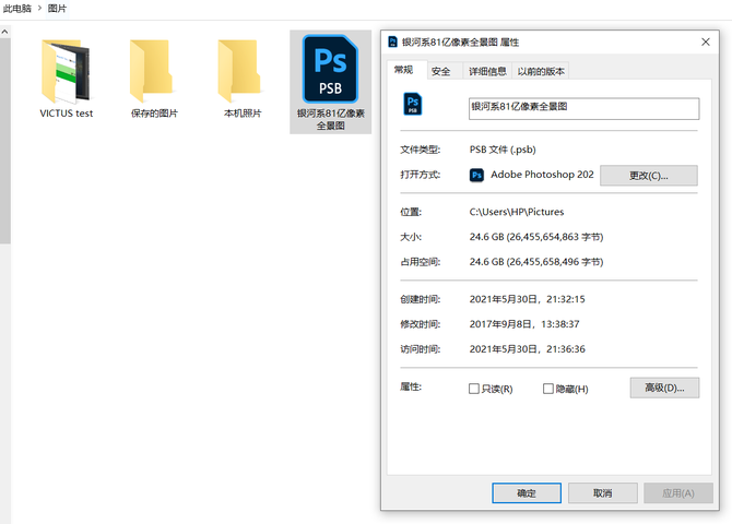 我们再用一个实例来验证一下,准备了一个24.6GB的PSD文件,是一张有着81亿像素的超大图片,用PS2020来打开,看看其加载用了多长时间。