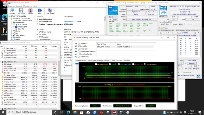 环境温度约27°C,OGH为狂暴模式,使用AIDA64进行单烤,运行32分钟,CPU温度在90、91°C,功率基本上可达45W而且很稳定。