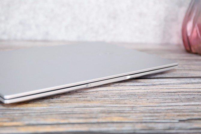 机身采用了海浪腰线造型设计,侧边略有上扬的弧度,手感很是柔顺,C面机身与触控板靠近处还采用了内凹设计,便于单手开启上盖。