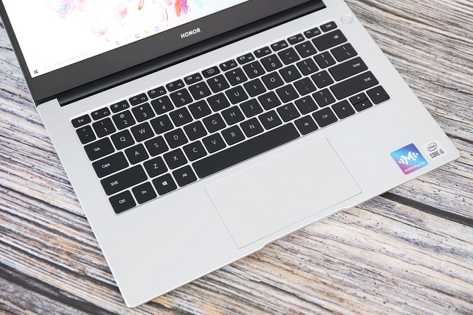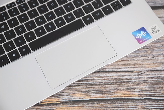 MagicBook X14的整个C面采用了无缝一体化金属材质设计,不仅坚固还有效防止细微灰尘的进入。全尺寸带有两级可调LED背光键盘,按键的按压干脆利落,反馈及时,细腻的喷涂不仅手感好,打字也很舒适。