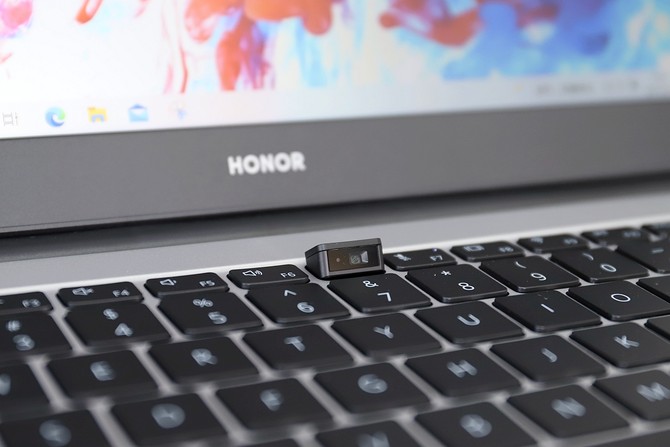 隐藏式前置摄像头已经成为荣耀笔记本一个标志性的特点,需要开启时按一下,不用时按下去,能够从底层彻底保护个人隐私。