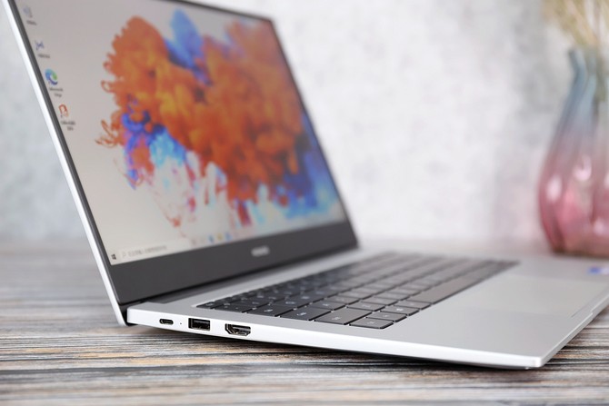 在日常办公中,与同事分享数据,U盘或者移动硬盘是少不了的,或者是在演示PPT中,还需要连接投影仪。荣耀 MagicBook X14就是考虑了日常使用频率比较多的场景,所以在接口方面,除了一个Type-C,还有一个HDMI,一个USB 3.0 Gen1,一个USB 2.0 接口,当然,3.5mm耳机/麦克风二合一接口也是有的,上班时听歌,或者在某些场合连接音箱设备都是比较方便的。