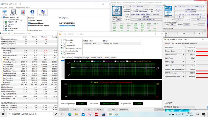 我们使用AIDA64的FPU单拷模式对CPU功耗、温度进行监测,室温28°C的环境下,运行38分钟,CPU核心温度可以稳定在65°C,功耗约15W,表现相当不错,完全可以满足日常长时间高负荷稳定工作。