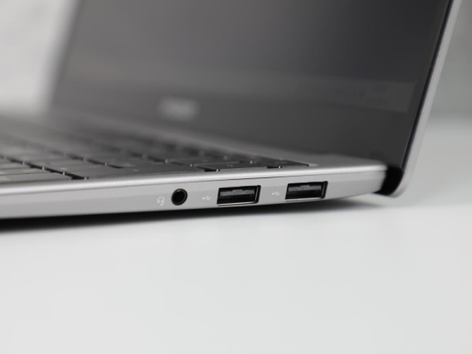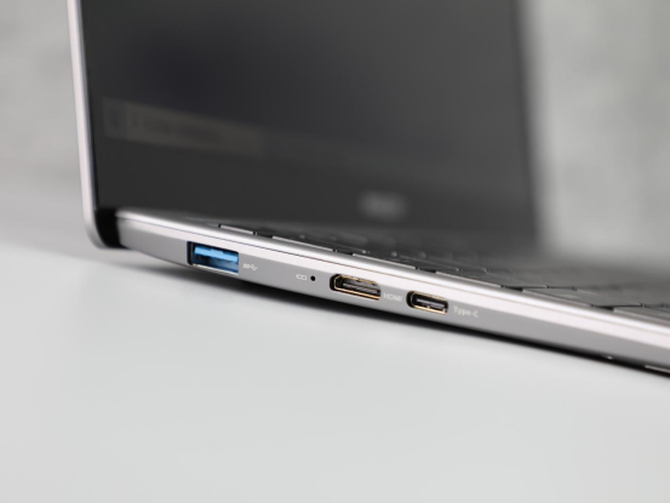 接口方面,这款轻薄笔记本电脑在左侧设计了一个USB 3.0接口,一个Mini HDMI接口和一个全功能Type-C接口,支持充电、数据拓展、数据传输,非常方便,同时机身的右侧是两个USB 2.0接口和一个耳麦接口,这样的配置基本符合轻薄本的标配,对于绝大部分的用户来讲的话,完全能够满足日常使用的需求。