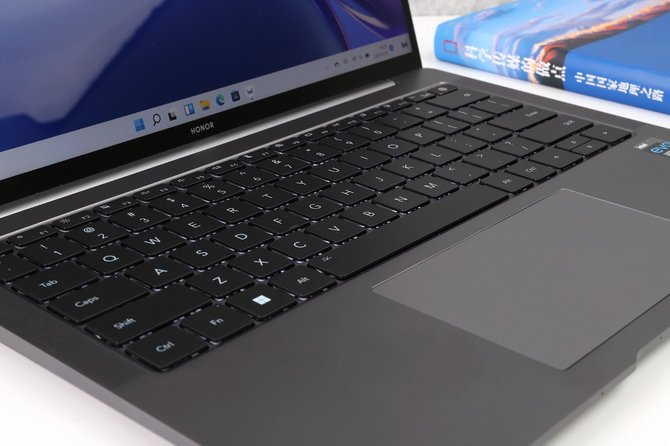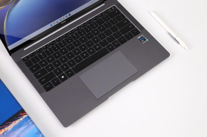 荣耀MagicBook V 14采用大尺寸触控板设计,隐藏式左右按键,表面细腻顺滑,定位精准,按键反馈清脆,在大多数办公时可以替代鼠标,此外,与预装的新一代Windows 11系统相配合,通过单指、双指、三指等可实现更多智能操控。需要说明的是,这块触控板下还内置Magic-link感应单元,较传统NFC标签感应面积增大至346%,感应距离提升至150%,连接效率大大提升。当使用荣耀手机靠近触控板区域,即可快速连接,实现图片文件互传等功能。