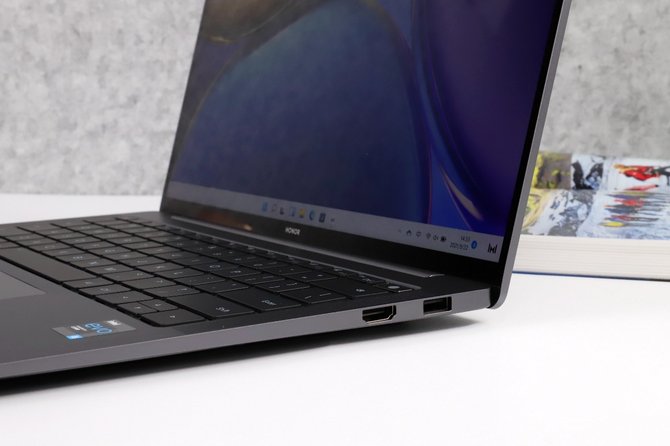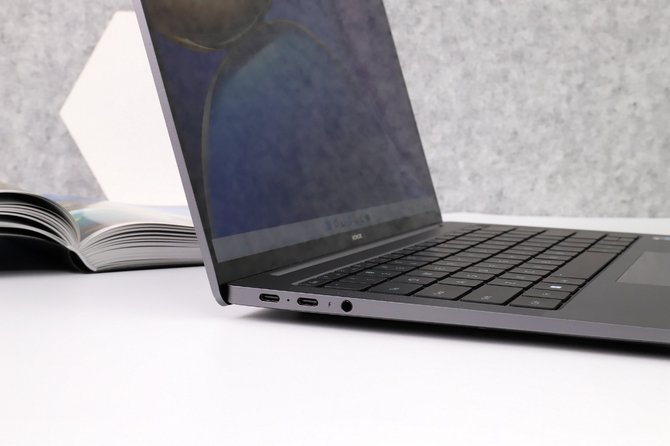接口方面,虽然荣耀MagicBook V 14有着轻薄的机身,但是并没有在接口上进行缩减,机身左侧搭配了双雷电4接口,可以用于65W充电和数据传输,1个3.5mm耳机&麦克风二合一接口。