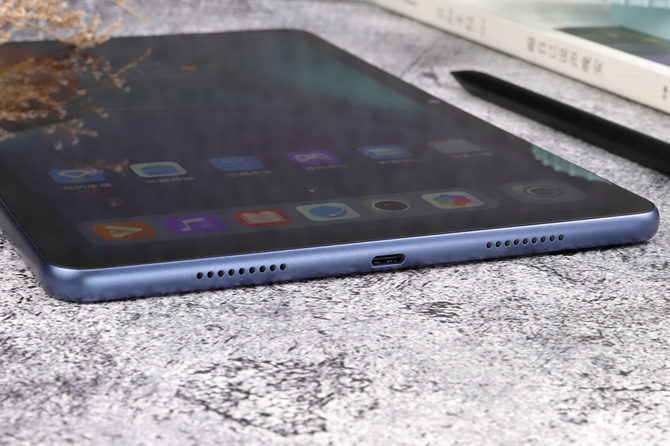 荣耀平板V7采用一体化流畅机身设计,金属的中框确保足够坚固、安全,具有弧度的圆润设计,握持更加顺手。机身薄至7.8mm,轻至480g,无论是握持观看视频还是出行时携带,都不会增加负担。机身底部中间是Type-C数据/充电接口,两侧、上下对称的小孔是4个大振幅扬声器,让响度增加的同时,也能够提供浑厚的低频享受。其对称的设计,以及在DTS:X® Ultra专业调音音效加持之下,荣耀平板V7的音质出色,高音甜、中音准,同时低频更加震撼,让用户体验到身临其境的感受。
