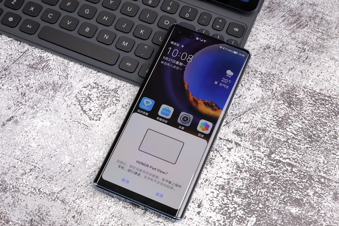 前面我们说过,在键盘上的Shift按键上有个NFC接触区,使用荣耀手机触碰到该按键即可建立连接,让手机与平板实现多屏互联。而且,随着荣耀智慧全景生态产品的陆续落地,手机与平板、与笔记本、与智慧屏等的跨屏互连已经显现,所有带屏幕的产品都不再是孤立的,除了镜像,包括文件的拖拽、显示扩展等均可实现,一机多能,一屏多显,效率何止翻倍。