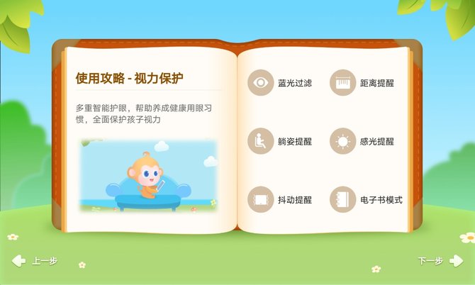 对于家有儿童的用户,荣耀平板V7的屏幕还支持低蓝光显示,以及在宝宝使用模式时的距离提醒、姿势提醒、屏幕亮度自动调整等功能,时刻呵护家人健康。