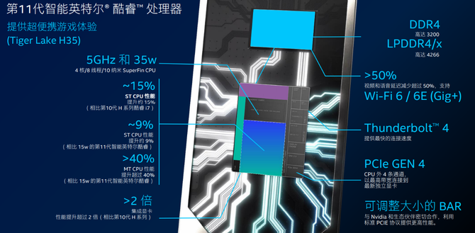 如果你想在今年入手一款既能打游戏又能用于创作的轻薄本,那我一定推荐你购买H35系列的11代英特尔酷睿处理器平台的产品!首先,H35系列处理器采用了Tiger Lake H高性能标压架构,设计功耗达到了35W,定位的就是轻薄游戏本和高性能轻薄本。此外,搭载的锐炬Xe显卡,结合35W的功耗,无需独显助力,足以在高画质的1080P分辨率下流畅运行主流游戏。