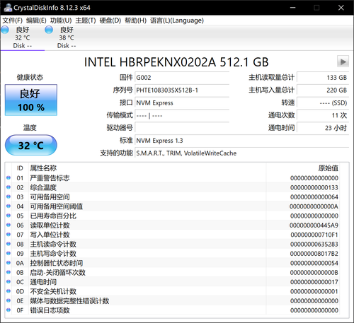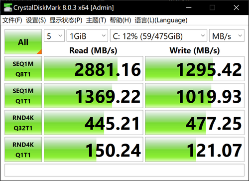 硬盘存储方面,采用了Intel H10系列NVMe接口的傲腾SSD,容量512GB,QLC颗粒。顺序读取速度为2881.16MB/s,写入速度为1295.42MB/s,可以满足日常大文件的拷贝和存储。