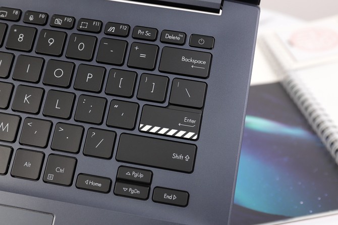 键盘的Enter按键设计也很有特点,下边采用了反差较大的斜纹,很有设计感,与其它产品的键盘形成强烈差异化,更加突出年轻人的审美。