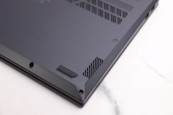 机身右侧的接口包括一个圆形的充电接口,配备了一个轻巧的65W适配器,出行携带无负担。此外还有1个USB 3.2 Gen1 Type-A,1个HDMI,1个雷电4 Type-C(支持PD充电),1个Micro SD读卡器,1个标准音频接口,其中雷电4接口能够外接高性能显卡坞、高速SSD、高性能扩展坞、8K显示器等,满足各类扩展需求。