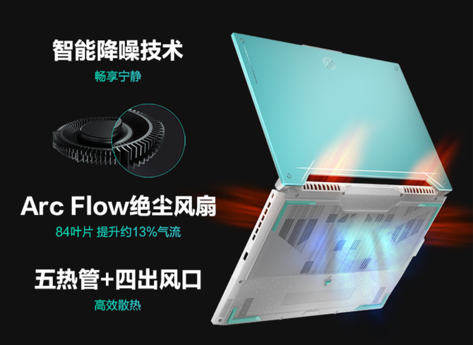 此外,天选3也搭载了冰川散热系统,其采用了新型Arc FLow绝尘风扇,并升级到五热管四出风口,散热能力增强,时刻令笔记本保持冷酷。而全新开发的智能静音技术,可在低负荷情况下停止风扇转动,畅享更安静工作环境。