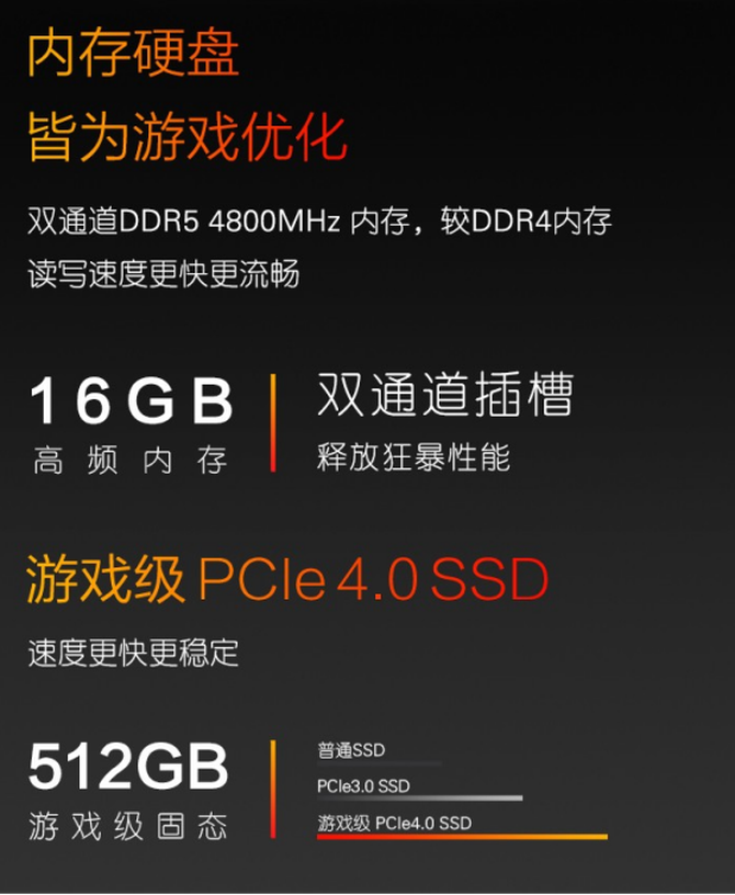另外一项重大升级,就是全新的光影精灵8升级双通道DDR5 8g*2 4800MHz,性能相对上代DDR4提升超过50%,提升非常明显,不论是游戏还是内容创作都能够提供更强的性能支持,获得更高的游戏帧数和更快的运转效率。