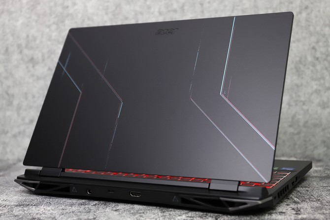暗影骑士·擎2022版更新了模具,并在A面上进行了创新语言的设计,Acer的Logo移到了上方的中间,一眼就能识别,红蓝的线条犹如霓虹闪耀,简洁、时尚,而不失科技感。整机的重量约2.5kg,厚度约27mm,对于男生玩家,放在背包里携带并不会感到困难。