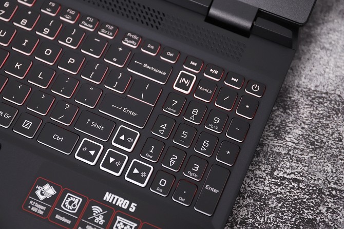右侧是独立的数字按键区,以及专属的大N,可以一键开启NITROSENSE控制中心。