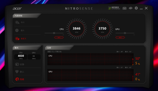 对于一些玩家来说,并不满足简单地使用电脑,比如在不同的应用环境下,如何让自己的笔记本发挥特殊的性能,办公时更安静,游戏时又能全速前进。而NITROSENSE控制软件就能轻松实现。