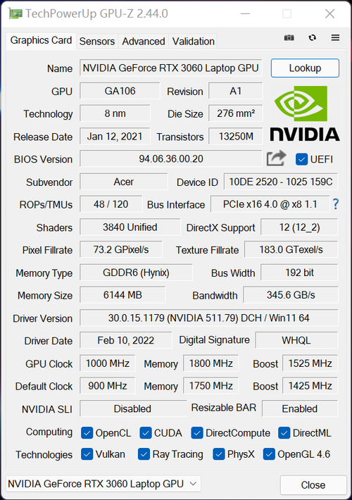 GeForce RTX™ 3060 Laptop GPU采用了最新的NVIDIA Ampere架构,代号GA106,3840个着色器,6GB GDDR6显存。在NVIDIA DLSS技术的支持下,运行《古墓丽影:暗影》《控制(Control)》、《永劫无间》等带有实时光追和DLSS技术的游戏时,能够获得显著的性能提升,以及更高帧率、更佳画质的畅爽游戏体验。
