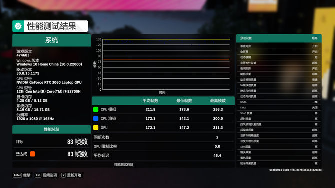 《极限竞速:地平线4(Forza Horizon 4)》的测试中,使用其内置的性能测试,CPU模拟和渲染的平均帧数分别为211.8、172,GPU平均帧数为172,完全可以畅玩。