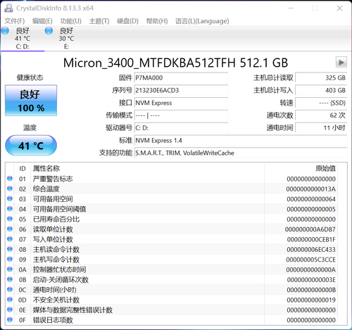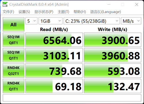新品暗影骑士 · 擎 2022版搭载了一块美光512GB固态硬盘,使用CrystalDiskMark测试,这款SSD的顺序读取速度为6564MB/s,写入速度为3900MB/s。完全可以满足日常文件的拷贝,如果存储空间不够用,该机还提供了多2个M.2硬盘扩展位。
