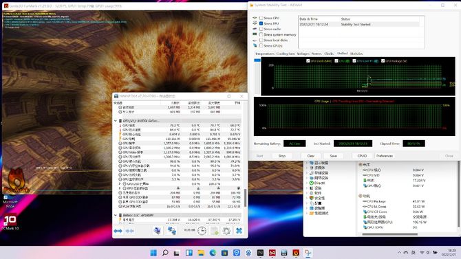 最后使用AIDA64D FPU选项+FurMark进行双烤测试,CPU+GPU功耗释放达到了45W+113+W,性能释放已经不错。