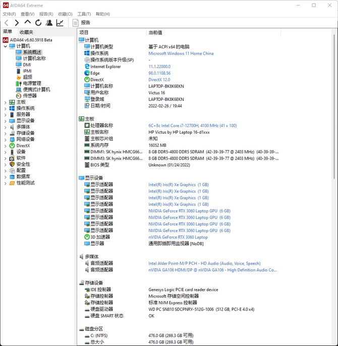 我们评测的这款惠普VICTUS光影精灵8搭载了第十二代英特尔酷睿i7-12700H处理器,GeForce RTX 3060 Laptop GPU,16GB DDR5 4800双通道内存,512GB PCIe 4.0 SSD,Wi-Fi 6e支持,并预装微软Windows 11操作系统。此外,这款笔记本还内置70Wh电池,在安静模式下可以获得更长的续航时间,以及支持快速充电技术,配备的200W适配器,确保使用无忧。