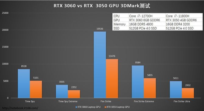 在与RTX 3050显卡的对比中,可以看到RTX 3060在性能上的提升非常明显,Time Spy 和Fire Strike的跑分提升40-41%,所以,此次升级后的惠普VICTUS光影精灵8,12代酷睿+RTX 30系列显卡的组合,表现相当优秀。