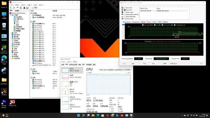 最后使用AIDA64D FPU选项+FurMark进行双烤测试,CPU+GPU功耗释放达到了45W+90W,性能释放水平很不错。此外,即便是在双烤的状态下,VICTUS光影精灵8的键盘面依然保持了清凉的体感,而且噪音也一如既往的低,这点还是值得肯定的。