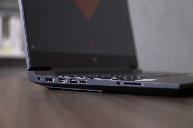 接口方面,机身左侧提供了电源接口,RJ45接口,HDMI接口,USB Type-A 3.0接口,USB Type-C接口(支持视频输出),3.5mm耳机/麦克风二合一接口,标准SD卡接口。