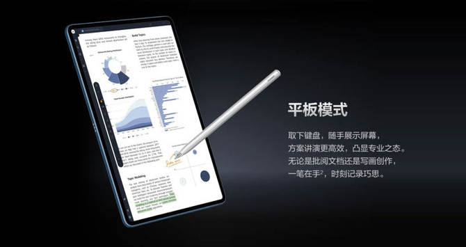 对于移动办公的场景,笔记本能提供高性能,可以处理各种工作,而平板拥有更好的便携性,同时更适合展示以及轻度办公,各有各的优点。华为MateBook E则将PC和平板两者结合,既拥有PC的高效性能也拥有平板的便携性,并且可以实现PC和平板两种形态的切换。