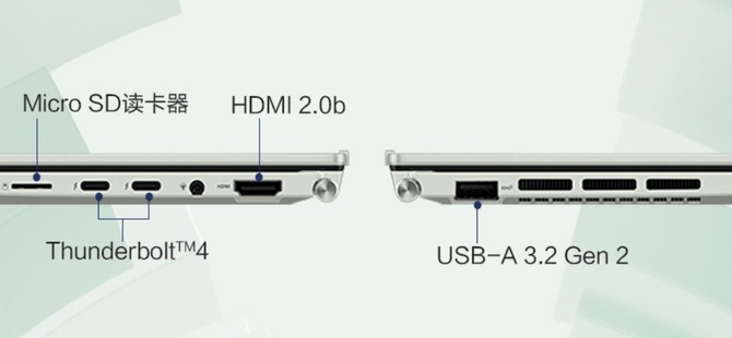 硬件配置,搭载了第11代酷睿标压移动处理器,8线程、睿频高达4.8GHz,功耗释放可达35W,配备MX450独显、2GB DGGR6显存,双热管、双风扇散热系统,搭配大面积鳍片,提供了强大的散热能效,以及整机性能释放。接口方面配备了双满速雷电4接口,高速WiFi 6无线。