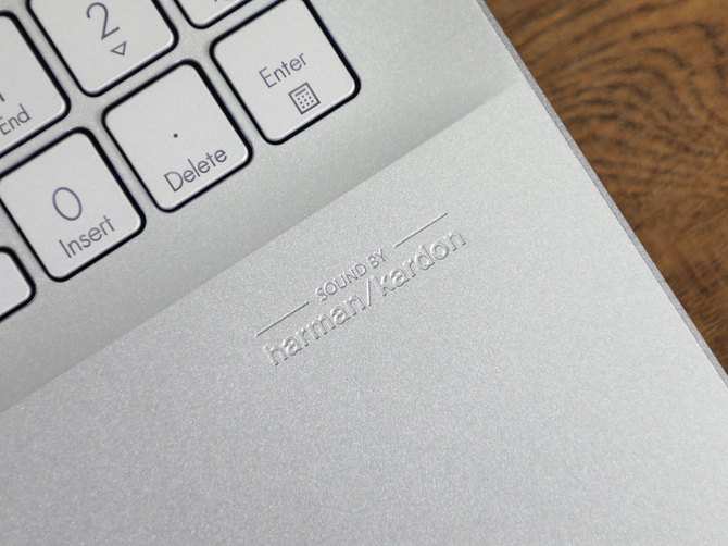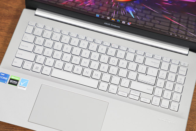 C面采用了和机身颜色一致的银色配色,在布局方面,拥有小键盘区域,属于主流15.6英寸笔记本的键盘布局,同时回车键也是标志性的华硕创作本设计风格,起到了很好的点睛作用。