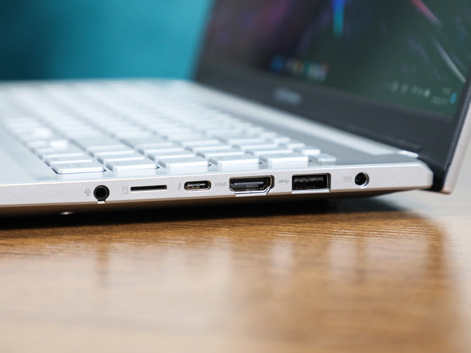华硕无畏Pro15 2022在保证机身纤薄的同时,还提供了丰富的I/O接口,机身的左侧是两个USB-A接口,右侧分别是电源接口、高速USB-A接口、HDMI 2.1接口,满速雷电4接口,和一个TF读卡器和音频接口,基本上能够满足绝大部分的用户的日常使用需求,尤其是对于内容创作者来讲,HDMI 2.1和读卡器的设计,更加方便拷贝素材和拓展大屏幕进行视频剪辑。