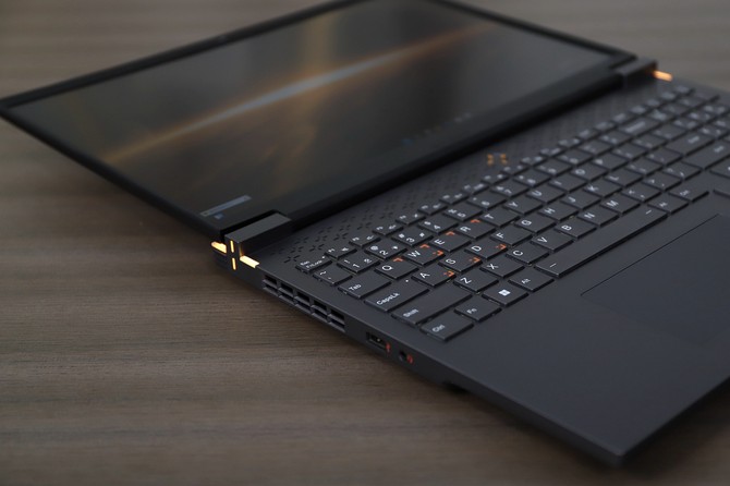 机身左右的转轴处还分别有RGB十字象限灯标,支持神光同步,晚上跟好友开黑时非常酷炫。此外,这款笔记本还支持180°屏幕开合,在跟同事分享屏幕时更加自由。