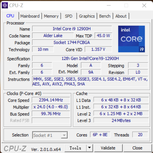 第12代英特尔® 酷睿™ i9-12900H 处理器,拥有14核心(6P+8E)、20线程,24MB三级缓存,最大睿频频率5.0GHz,基础功耗45W,搭载96EU、1.45GHz的英特尔锐炬® Xe 显卡,在游戏速度和内容创作方面均表现优异。