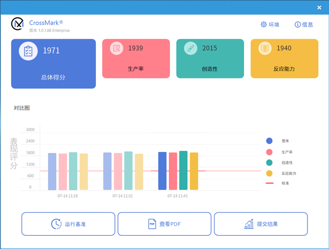 CrossMark是一款比较轻型的PC性能测试平台,从生产力、内容创建和响应速度等三类应用场景给出成绩。可以看到,搭载了英特尔酷睿i9-12900H处理器的机械师曙光16,在CrossMark测试的总体得分为1971,其中生产率得分1939,创造性得分2015,反应能力得分1940。相比较酷睿i7-12700H略有提升。